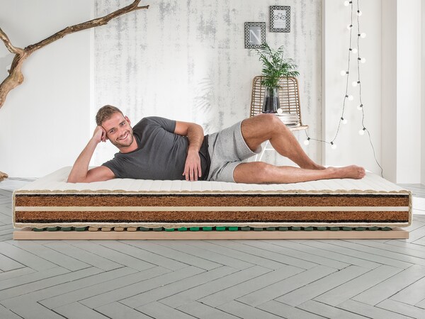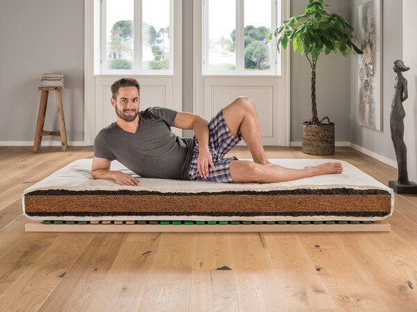 L’un de nos matelas naturels est doté d’une âme en coco non traité, rigoureusement contrôlé contre les substances nocives. Celle-ci est entourée de latex naturel issu à 100 % de caoutchouc naturel. L’âme en coco de ce matelas naturel assure un bon transport de l’humidité, une aération transversale et la circulation d’air nécessaire. Les matelas naturels avec fibres de coco séduisent par leur élasticité constante et leur bonne capacité à conserver la chaleur.
