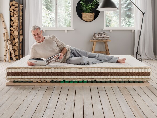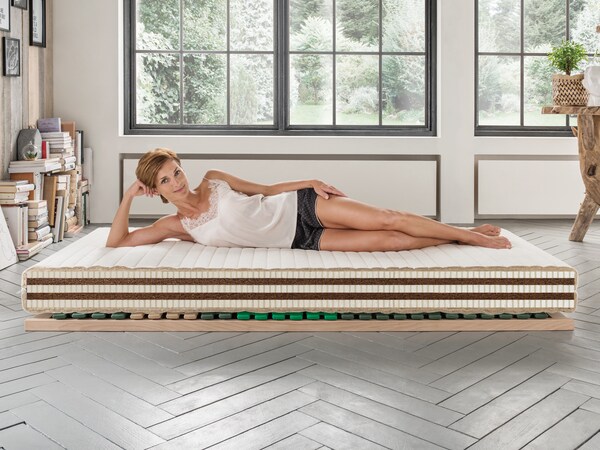 Pour la fabrication de ces matelas, les fibres naturelles respectives sont transformées en nattes. Les matériaux utilisés sont les fibres de coco, le crin de cheval, le kapok et le chanvre. Les différentes couches de fibres naturelles sont combinées avec des couches de latex naturel, ce qui permet d’obtenir des matelas naturels offrant des propriétés de couchage variées.