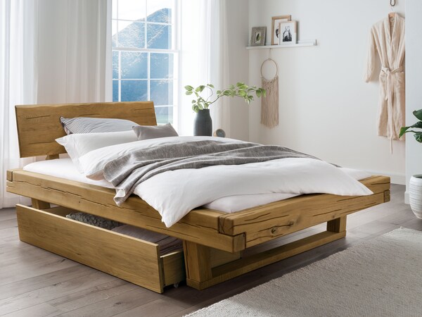 Les meubles en bois massif paraissent visuellement plus chaleureux que les meubles en panneaux de particules et en plastique. Le toucher du bois naturel est également un plaisir. Le bois massif est chaud et vivant au toucher, très différent d'un lit en métal ou en panneaux de fibres revêtus. Les meubles en bois massif à surface poreuse sont bénéfiques pour le climat intérieur, car le bois respire. Les meubles en bois massif ne sont bien sûr pas seulement idéaux dans la chambre à coucher, mais aussi dans le salon, la chambre d'enfant, le bureau, l'entrée et même la salle de bain.