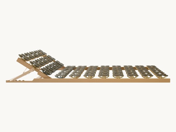 Chaque plot individuel est mobile dans toutes les directions. Il s’adapte en trois dimensions au corps. Nos sommiers à lattes offrent un maximum de confort de couchage. Ils répondent aux exigences orthopédiques les plus élevées. Tous les sommiers à lattes sont dotés d’un effet ressort sans bord. Ils conviennent aux dormeurs sur le côté, sur le ventre et sur le dos. Selon le modèle, nos sommiers à lattes sont entièrement sans métal, électriques, réglables en continu et végan.