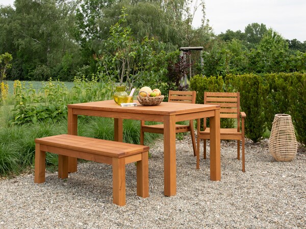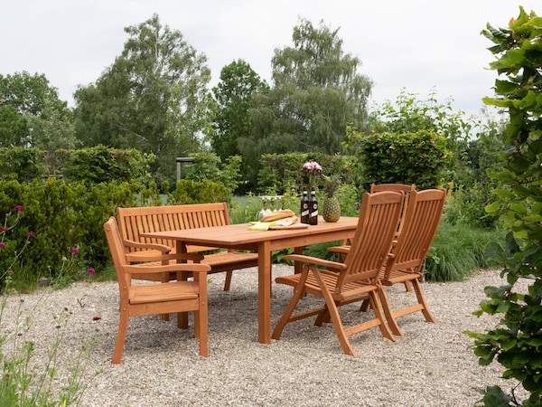 Pour nos meubles de jardin tels que tables de jardin, chaises, fauteuils, bancs, etc., nous utilisons exclusivement du bois de robinier de haute qualité. Grâce à sa robustesse, il est parfait pour une utilisation dans le jardin. Ce bois résistant aux intempéries n'a rien à envier aux bois durs courants tels que le teck et l'acacia. Un entretien régulier avec de l'huile naturelle protège vos meubles de jardin et vous permet d'en profiter longtemps.