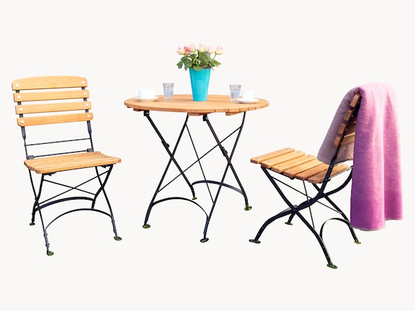 Tables rectangulaires ou rondes avec deux chaises - idéales pour les petits balcons