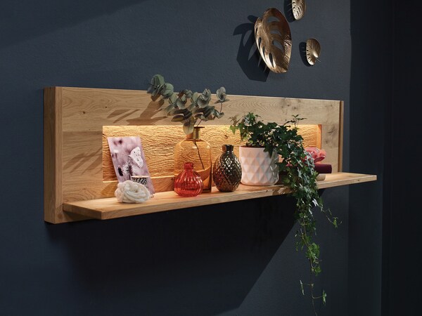 Lignes droites, bois rustique (souvent chêne sauvage) avec des fissures naturelles ou travaillées avec soin, associés à de l’acier froid. Les assemblages vissés sont souvent volontairement visibles. Les structures ouvertes des compositions murales, tables basses, buffets, meubles TV & Co. caractérisent ce style d’habitat initialement développé dans les lofts et ateliers. Le charme de ces « meubles de salon en bois » réside dans l’imperfection suggérée et la structure fascinante du chêne sauvage, par exemple.