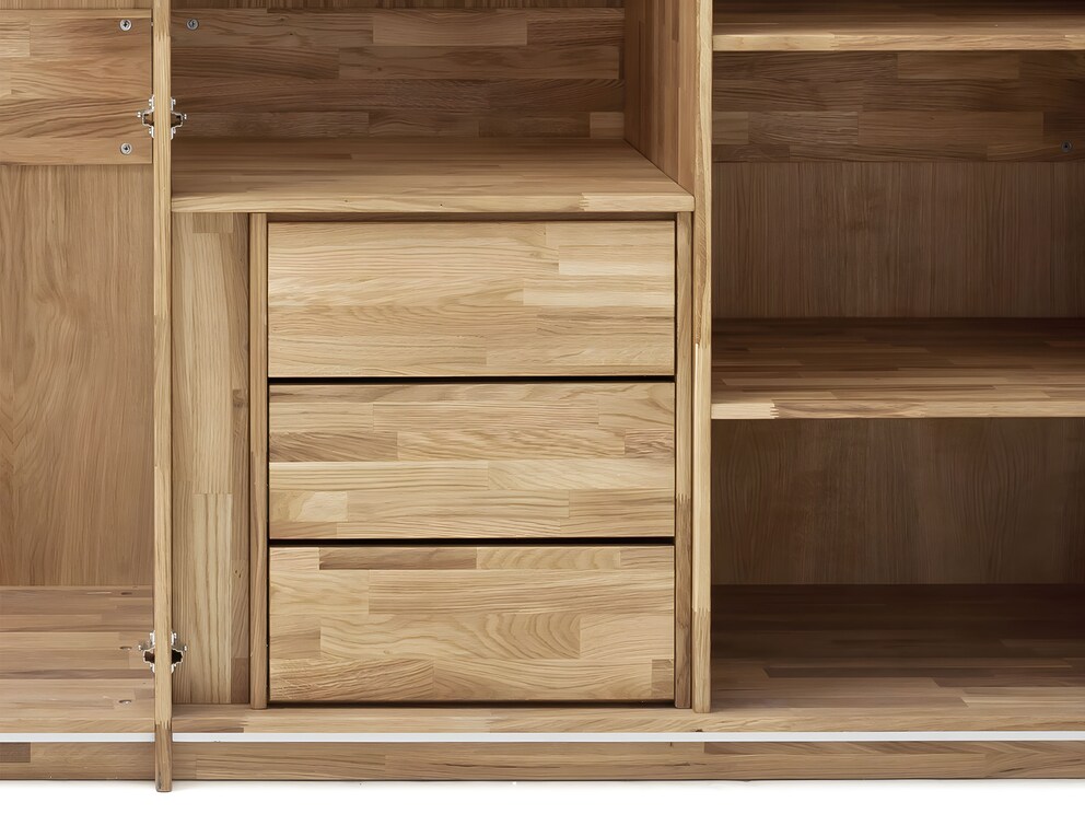 Avec cet accessoire pratique, vous adaptez votre armoire exactement à vos besoins. Des étagères supplémentaires, un porte-pantalons, un kit de séparation centrale et des tiroirs sont prêts à personnaliser votre armoire à portes battantes « Capania ».