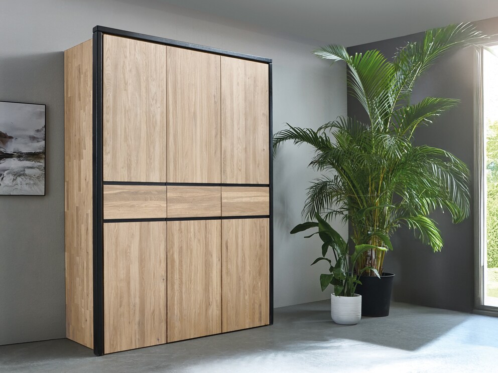 L’armoire à portes battantes « Tronco » associe raffinement fonctionnel à une élégance naturelle. Le veinage vertical du chêne sauvage massif met particulièrement en valeur la beauté naturelle du bois, tandis que la bande centrale apporte une touche décorative. Un point fort particulier réside dans les poignées noires situées au-dessus et en dessous de la bande centrale. Celles-ci confèrent à l’armoire une note moderne, qui se distingue particulièrement avec la finition claire Bianco. Mais même avec la finition huilée, la bande centrale est mise en valeur de façon saisissante par la couleur noire.