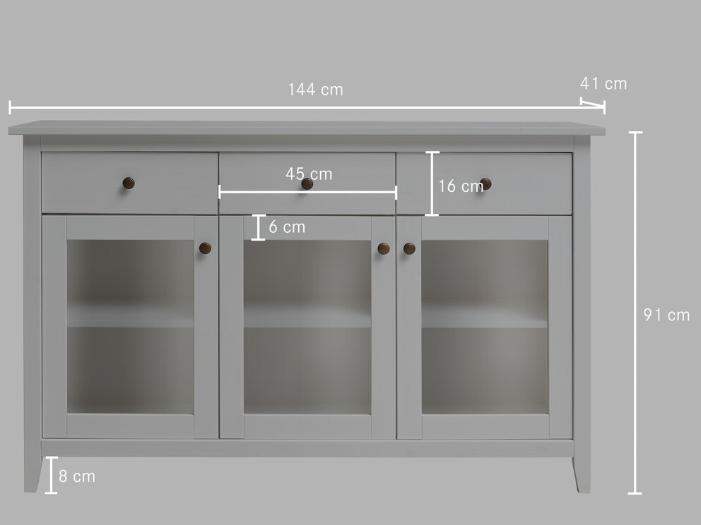 Derrière deux portes, trois tiroirs pratiques et dans trois niches ouvertes, tout trouve suffisamment de place, des assiettes aux verres en passant par les objets de décoration. Les portes sont réalisées dans un style à panneaux, ce qui allège astucieusement la structure massive. Derrière les portes en bois, tout est rangé à l’abri des regards. Vous préférez tout avoir sous les yeux ? Alors la variante avec portes vitrées est parfaite pour vous ! La fabrication est réalisée avec soin, selon un savoir-faire artisanal traditionnel.