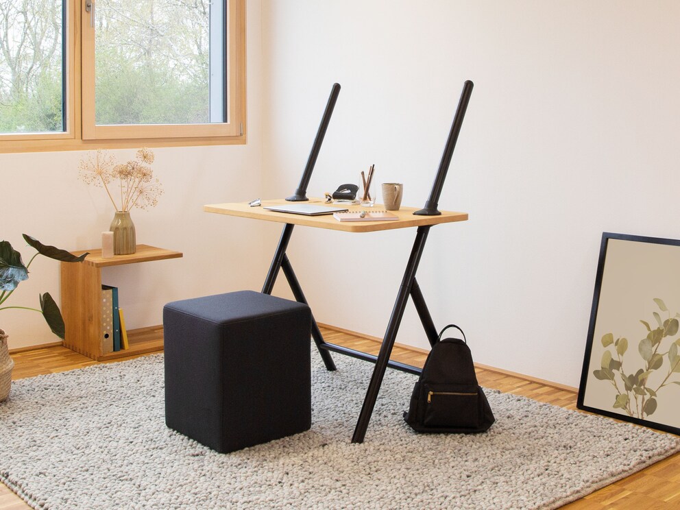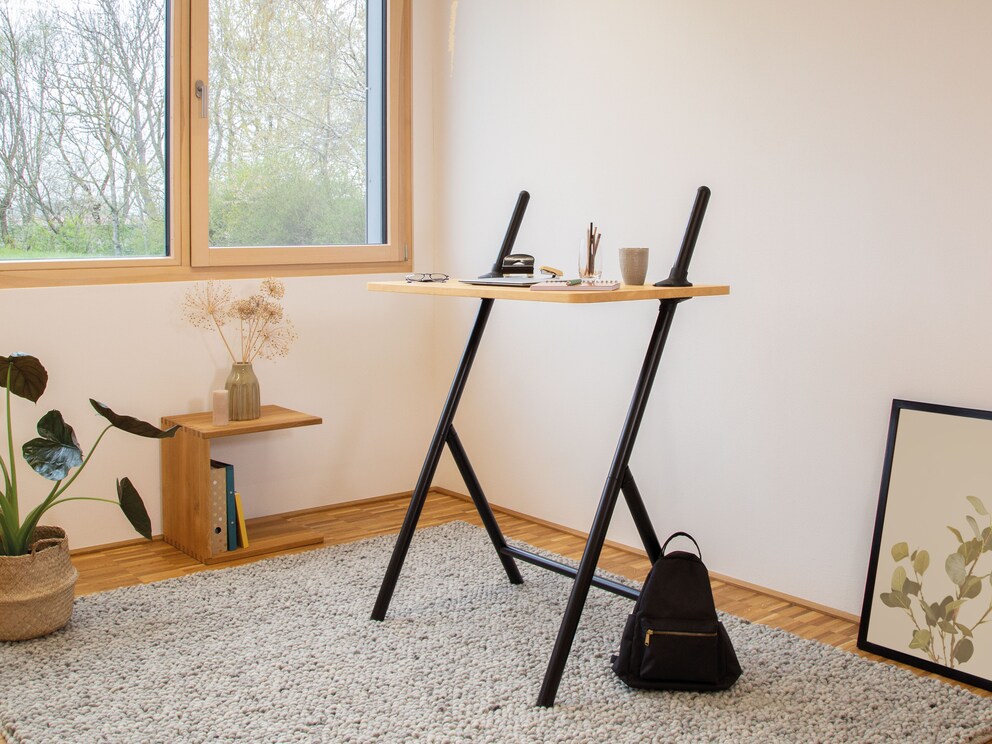 Que vous préfériez travailler debout ou assis, « Procero » s'adapte de manière flexible à vos besoins. Le plateau de table est réglable en hauteur en continu. Et le meilleur : une fois le travail terminé, le bureau se plie facilement et se range de manière compacte – ce qui en fait aussi une excellente alternative pour la chambre d'enfant ou d'adolescent. Grâce à sa praticité de pliage, le choix de l'emplacement de travail est également flexible : « Procero » ne prend pas beaucoup de place et vous pouvez changer rapidement de pièce selon vos envies, par exemple lorsque le soleil brille directement sur l'écran.