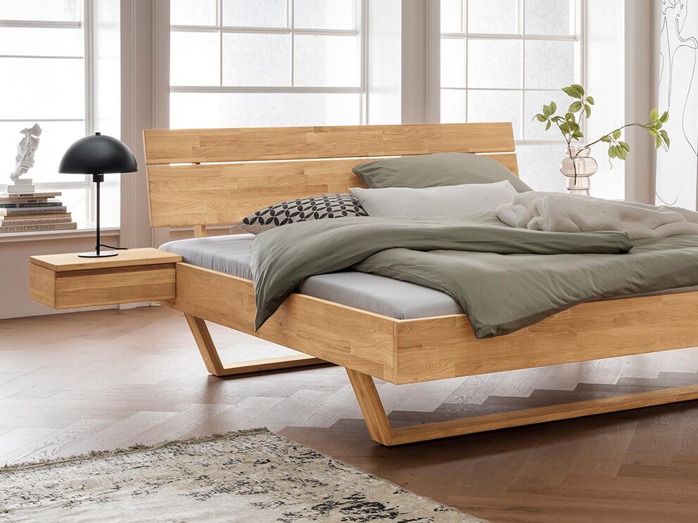 Vous pouvez obtenir cette table de chevet en cœur de hêtre vivant ou chêne sauvage élégant. Elle est le complément parfait à votre lit flottant « Golaro ».