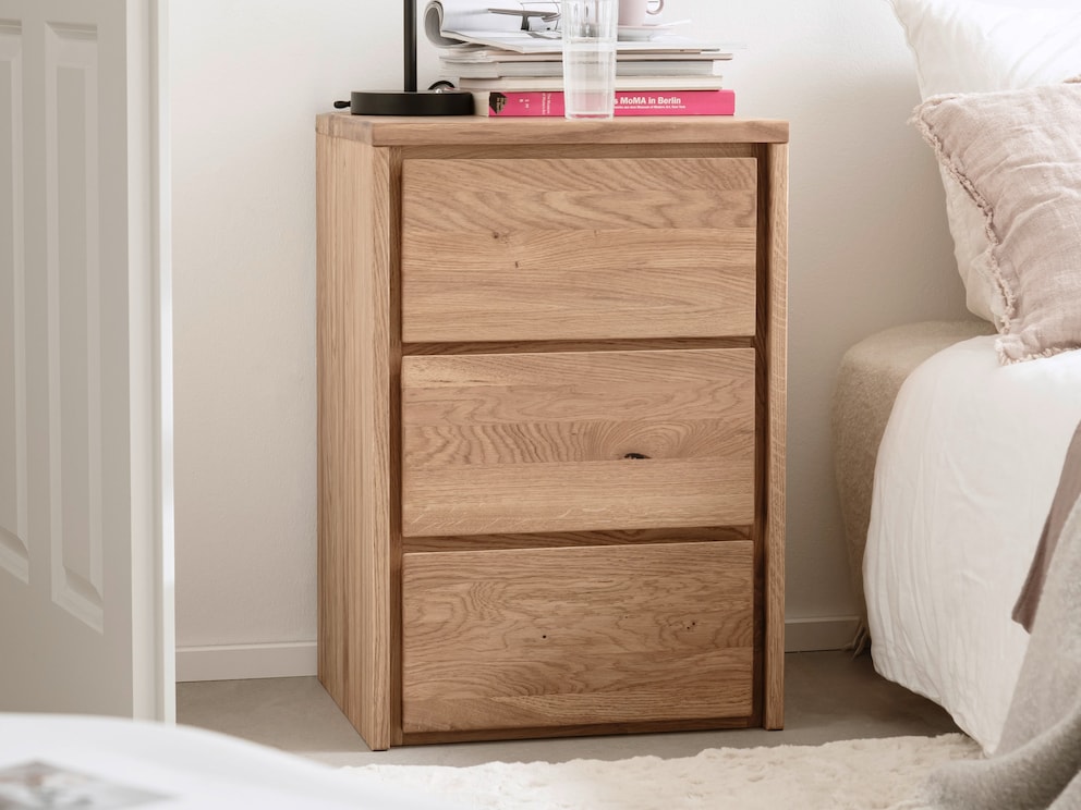 les grandes surfaces en bois mettent en valeur le bois noble de chêne sauvage sans être détournées par des poignées ou des rainures décoratives. Les poignées encastrées agréables au toucher vous permettent d'ouvrir sans effort les portes et les tiroirs de votre nouvelle commode. « Canto » vous offre beaucoup d'espace pour ranger de nombreuses choses, où que vous en ayez besoin. Qu'il s'agisse du linge dans la chambre à coucher, de la vaisselle dans la salle à manger, des verres dans le salon ou des gants, écharpes et clés dans le couloir, les possibilités d'utilisation sont pratiquement infinies. Parmi les 5 variantes différentes, vous trouverez rapidement la commode qui convient à votre intérieur.