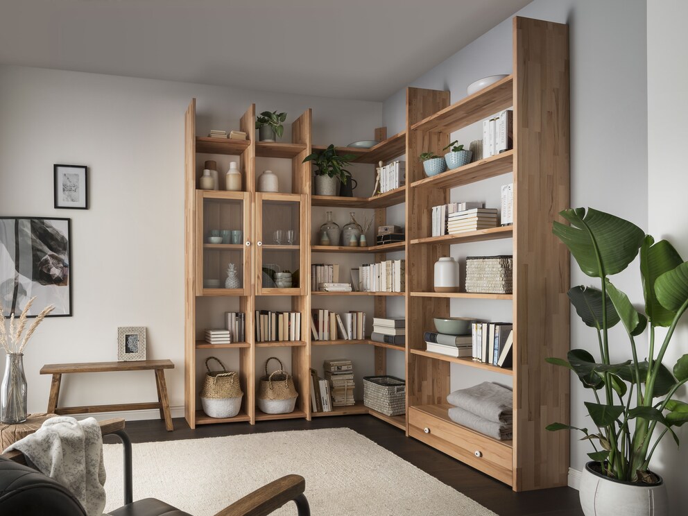 « Sedes » est fabriqué par des spécialistes danois du bois massif. Ce magnifique système de rangement en bois massif est disponible au choix en pin avec des finitions lessivées/huilées, couleur miel ou laquées en blanc, ou en cœur de hêtre et en chêne sauvage huilé.