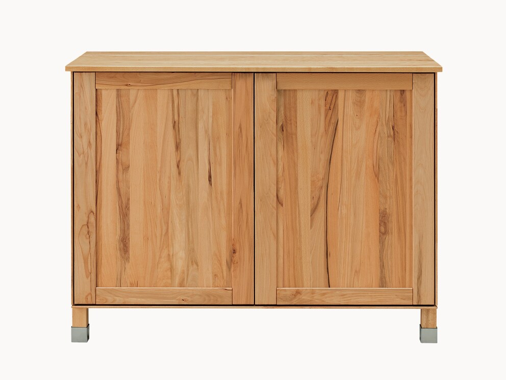 La façade en cœur de hêtre ou en chêne massif est conçue dans un apparent aspect cassette et confère à votre cuisine une touche méditerranéenne dans le style maison de campagne en vogue. Ce bijou peut également être utilisé comme séparateur de pièce pratique et s'étendre sur toute la surface de la pièce. Choisissez votre îlot privé parmi 6 variantes en différentes largeurs