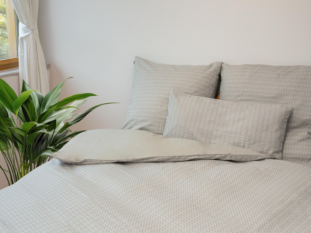 Qui ne voudrait pas se laisser envelopper par ce linge de lit élégant ? « Rosella » en jacquard au brillant raffiné présente un motif à petits carreaux plein de fantaisie. Et si, exceptionnellement, vous n’avez pas envie de petits carreaux ? Il vous suffit alors de retourner la couette et vous obtenez un rêve romantique en gris, en satin de coton au brillant soyeux.