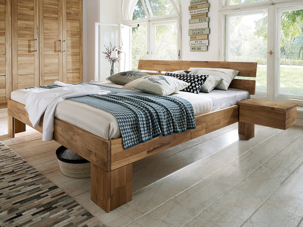 Lit en bois massif « Lettino » en chêne sauvage noble avec chevet assorti