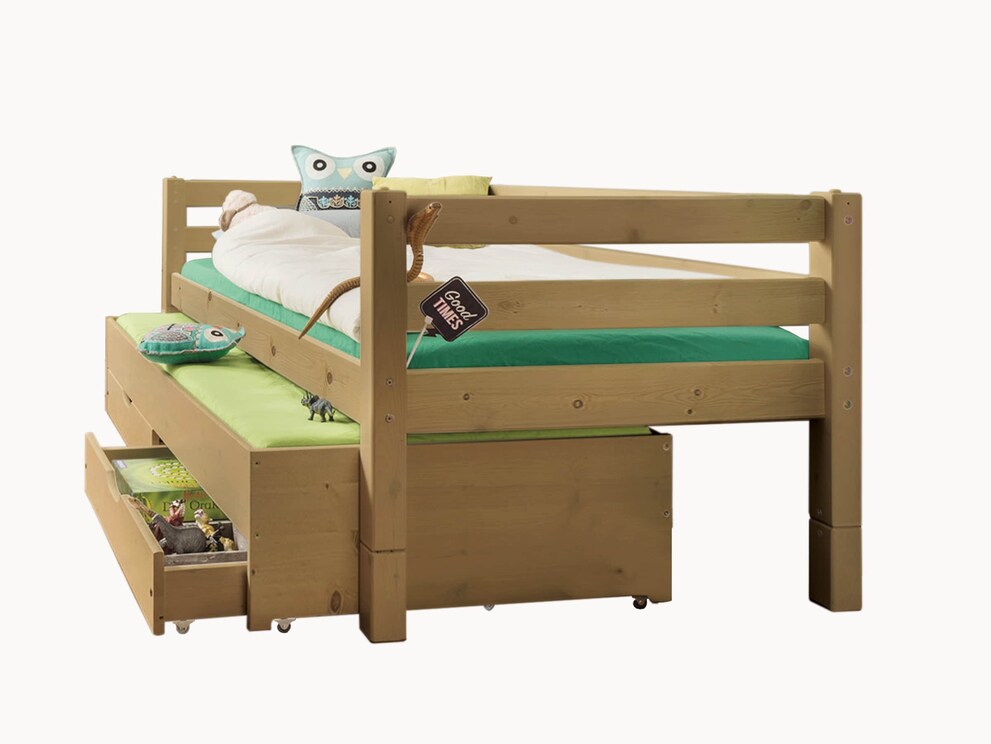 Lit astucieux peu encombrant avec lit d’appoint et tiroirs - ici, bien sûr, en version lessivée/huilée