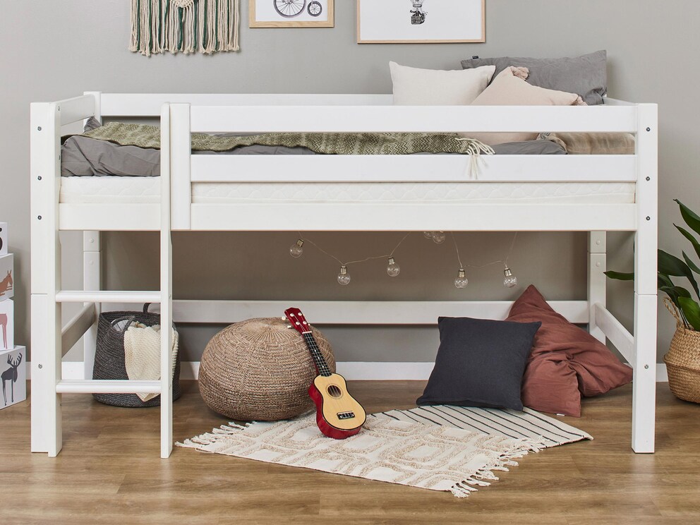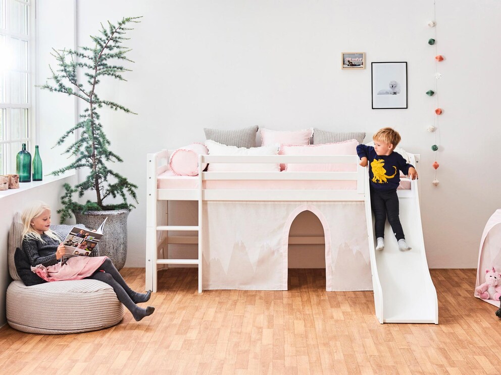 Son propre paradis de jeux avec le mini lit mezzanine « Ortholino » -ici avec rideau de jeu en option