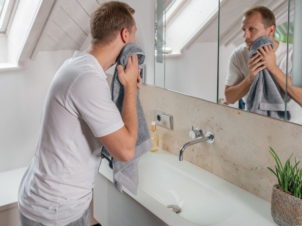 Glissez la serviette « Gradito » dans votre drap de douche du même nom dans votre sac de bain ! Son format pratique est parfait comme serviette supplémentaire pour vos cheveux. Ou placez « Gradito » à portée de main partout où vous souhaitez sécher rapidement vos mains : à côté du lavabo, dans les toilettes invités ou dans la cuisine. L’éponge de coton dense en coton issu de l’agriculture biologique contrôlée sèche parfaitement vos mains et redevient rapidement propre et hygiénique au lavage en machine.