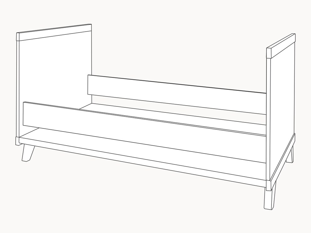 Grâce à ce kit de transformation, le lit bébé Lunda se transforme en lit junior.
