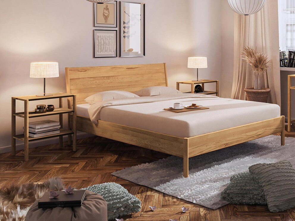 La table de nuit « Rota » existe en version pratique étagère ou en table de nuit à tiroirs, disponible en 2 hauteurs – chacune fabriquée en cœur de hêtre massif ou en chêne sauvage massif. À vous de choisir ce que vous préférez. Mais toutes les variantes ont un point commun : avec leurs pieds élancés en colonne, elles paraissent modernes et légères.