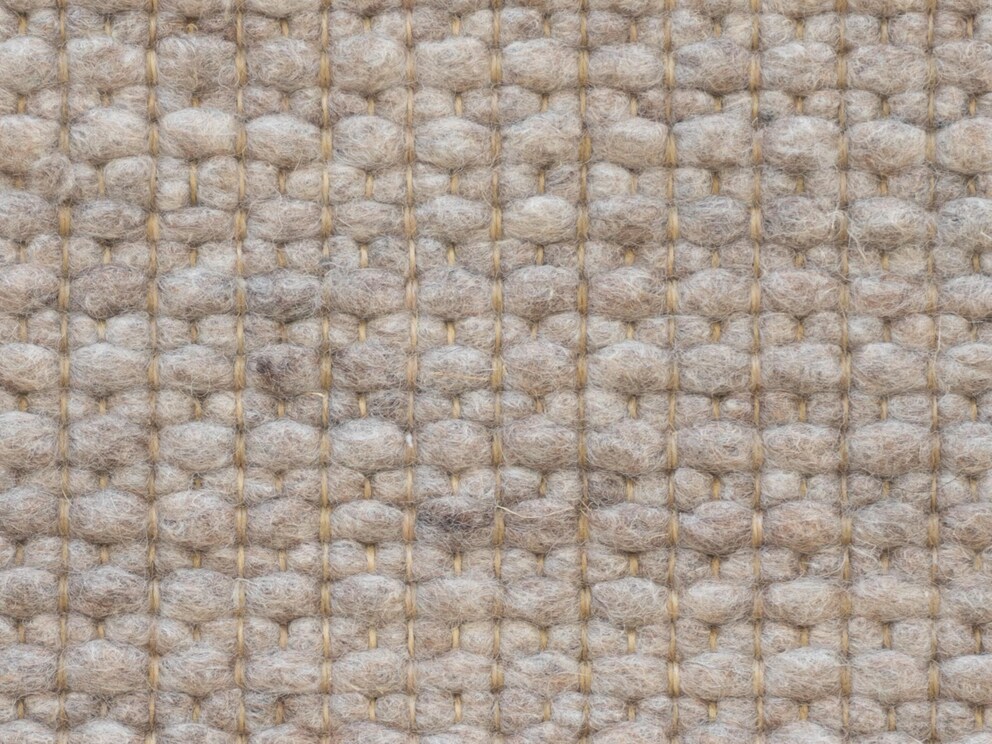 Tapis en laine vierge « Crusado » tissé à la main avec une structure unique, ici en beige