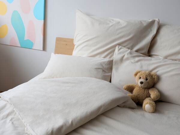 U heeft de keuze uit natuurlijke cretonnestof, knus fijnflanel bedlinnen van hoogwaardig flanel, fijn jersey of kinderbedlinnen van hoogwaardig katoensatijn met een lichte glans. Ook vindt u bij ons zuivere bedlinnen van katoen met fijn verweven renforcéstof. Met de conventionele teelt van katoen is het in ontwikkelingslanden treurig gesteld. Loon onder het minimumloon, kinderarbeid en een 80-urige werkweek zijn slechts een paar sleutelwoorden. Door de hoge inzet van pesticiden worden de grond, de lucht en het water vervuild en de werknemers lijden soms ook aan zware vergiftiging. Bio beddengoed voor kinderen van allnatura is gemaakt van 100 % biologisch katoen dat uit gecontroleerde biologische teelt komt. Dat betekent dat kunstmest, pesticiden en ontbladeringsmiddelen absoluut uit den boze zijn. Ook bij de verdere verwerking worden geen hulpmiddelen ingezet die schade aan het milieu aanbrengen. In dit knusse bedlinnen zal uw kleine lieveling beschermd slapen. Koop voor uw kind dus kinderbedlinnen met katoen uit gecontroleerde biologische teelt.