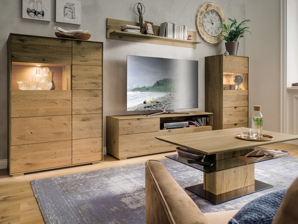 Laat u betoveren door de indrukwekkende verschijning van het "Senera" highboard. En weet je wat vooral de atmosferische houtnerf accentueert?