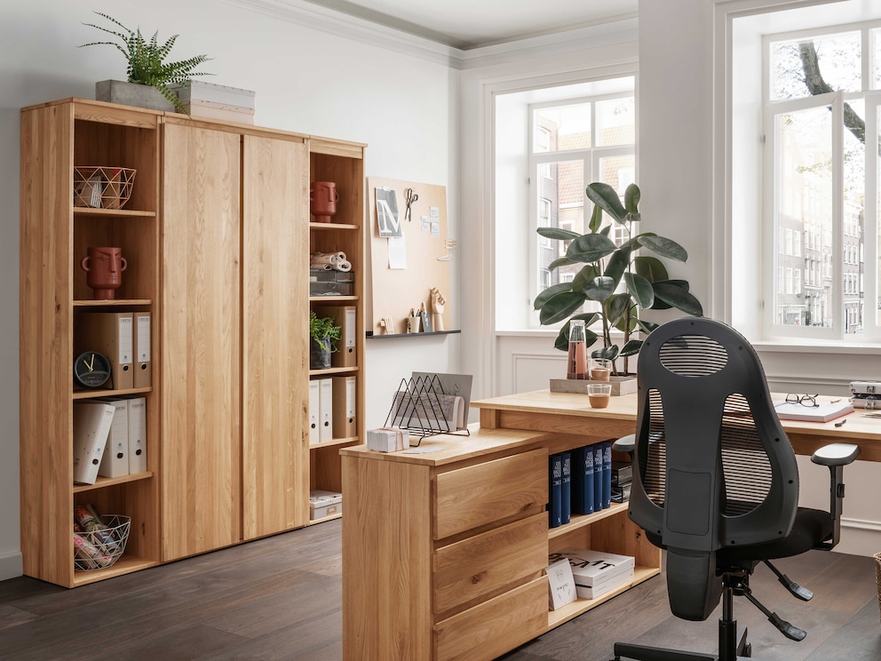 Deze archiefkast zorgt voor een overzichtelijke orde en natuurlijke rust in de werkomgeving. Massief wildeikenhout met een levendige nerf zorgt voor een warme sfeer en ondersteunt ontspannen, geconcentreerd werken. In hoogte verstelbare legplanken passen zich flexibel aan ordners en documenten aan en kunnen indien nodig eenvoudig worden bijgekocht. De kast wordt gemonteerd geleverd en overtuigt door zijn hoogwaardige afwerking. Geproduceerd in Duitsland – voor duurzame kwaliteit die je ziet en voelt.