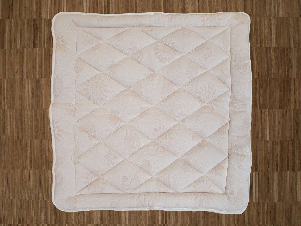 Het soepele katoenen dubbeldoek is doorgestikt met een dikke vulling van gecontroleerd biologisch katoen. Deze zachte en volumineuze vulling maakt het uw baby comfortabel en beschermt tegen kou van onderaf. En als er eens iets misgaat, dan kan de kruipdeken gewoon in de wasmachine. In een mum van tijd is alles weer schoon.