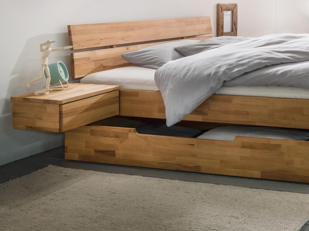 Altijd tot uw dienst is het "Calo" nachtkastje. Medicijnen en boeken zijn hier altijd binnen handbereik en veilig opgeborgen, en de leeslamp heeft een passende plaats. De hanguitvoering is verkrijgbaar met een lade, die eenvoudig links en rechts van het bed wordt gemonteerd. Als alternatief kunt u het staand model met twee laden krijgen. Kies uw favoriet.