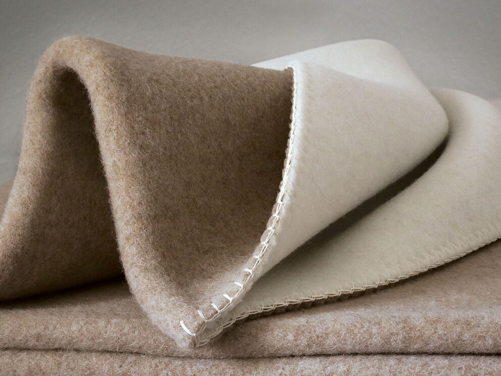 Scheerwollen deken van natuurlijk haar Selandia in doubleface-look, hier in de kleurstelling beige/wit