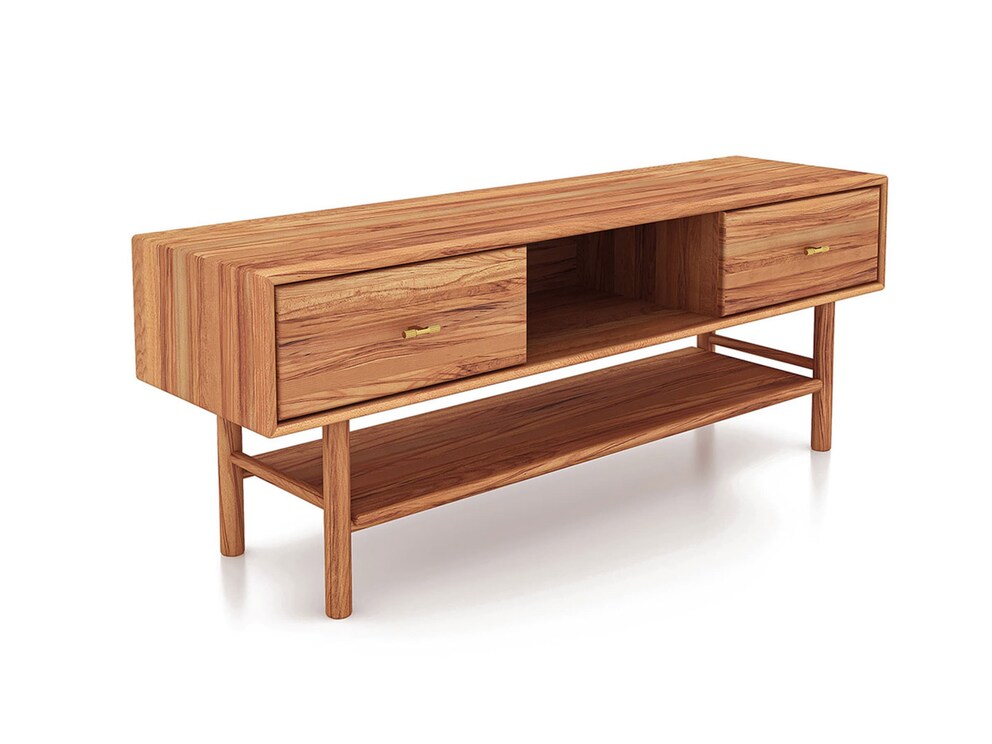 Lowboard Serea, variant 01 – strakke lijnen en warm wildeiken in mid-century stijl
