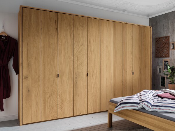 Een op maat gemaakte kledingkast past zich perfect aan de omstandigheden van uw slaapkamer aan en maakt optimaal gebruik van de bestaande ruimte. Veel van onze kledingkastmodellen kunnen exact op uw individuele behoeften worden gepland door middel van losse modules. Verschillende rasterbreedtes kunnen met elkaar worden gecombineerd, zodat uw flexibele droomkast van hout mogelijk wordt.