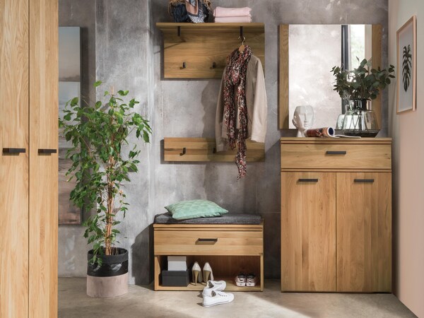 Wij denken dat u de voorkeur moet geven aan massief hout voor garderobemeubelen. De gang is het eerste wat mensen opvalt aan uw 4 muren. Een kast van echt hout straalt warmte en gezelligheid uit en heet uw gasten vriendelijk welkom. Het geeft uw entree en daarmee uw huis een natuurlijke en huiselijke uitstraling. Een kapstok van natuurlijk hout hoeft niet rustiek te zijn. Echt hout is niet alleen geschikt voor landhuizen. Massief hout is flexibel en past zich aan uw woonstijl aan. Als u zoekt naar "massief houten kastmeubelen", vindt u kasten in alle stijlen - meubels die rustiek, klassiek, modern, in landhuisthema of industriële stijl met metaal zijn. Uw perfecte massief houten kast zit er zeker bij.