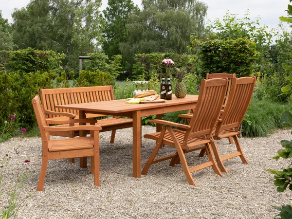 Duurzaamheid, hoogwaardig handwerk en de hoogste ecologische normen kenmerken deze prachtige massief houten tuinmeubelen. Dus als u toe bent aan vakantie, leun dan gewoon achterover en geniet van pure ontspanning. Hier komt het vakantiegevoel naar boven! U wilt de ontspannende uurtjes op uw nieuwe tuinmeubelen niet meer missen.