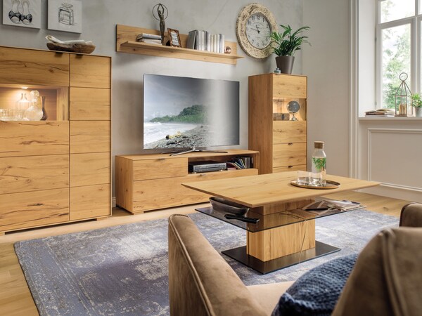Hout is een robuust en onderhoudsvriendelijk materiaal uit de natuur. Elke salontafel en elk hout straalt zijn eigen karakter uit. Terwijl het lichte beukenhout een rustige nerf heeft en daardoor op vele manieren kan worden gecombineerd, heeft het kernhout van beuken een opvallender nerf. Dit heeft een opwindend en huiselijk effect - perfect voor de moderne woonkamer. Een woonkamertafel van eiken of wild eiken kan een nobel tot rustiek effect hebben. Walnoot straalt een hoogwaardige charme uit en past met zijn donkere kleur perfect in grote en lichte woonkamers.