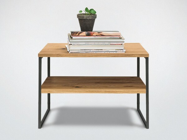 De combinatie van hout en glas of hout en metaal ziet er modern en opwindend uit. Ontdek uw nieuwe salontafel in een opwindend design. Een bijzettafel in de trendy industriële stijl - met elementen van zwart staal - tovert uw woonkamer om tot een gezellige loft. Bovendien kan het tafeltje van wilde eik worden gebruikt als nachtkastje.