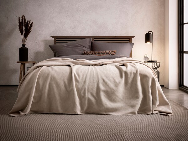 Met een donzige sprei van huidvriendelijk biologisch katoen maakt u overdag van uw bed een verzorgd pronkstuk. Deze spreien zijn ook handig als grand foulard, knuffelzachte deken voor twee of een aanvullende warme deken op een tweepersoonsbed.